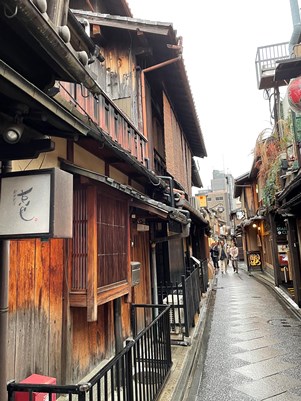 いろいろありますが、今回は京都市にある「先斗町(ぽんとちょう)」を紹介します。 先斗町は、鴨川と高瀬川に挟まれた京都の風情が感じられる繁華街で、料亭やバーなどが500メートル程にわたって建ち並んでいます。森見登美彦さんの長編小説『夜は短し歩けよ乙女』では京都大学や鴨川デルタ、叡山電車など京都の有名な場所がいくつも出てきますが、その中で「黒髪の乙女」が歩いた”めくるめく大人の世界”としてこの先斗町が描かれています。この作品はアニメ映画や演劇公演にもなっていて、先斗町はレトロな大人の街として表現されています。2021年の舞台版(脚本・演出:上田誠[ヨーロッパ企画])を観に行ったのをきっかけに先斗町を知り、その後2回聖地巡礼に行きました。まだお店の中まで入ったことはありませんが、先斗町を歩くだけで江戸時代にタイムリープにした感覚になります。いわゆる「映えスポット」です。今度行ったときは作品に登場するお酒、(偽)電気ブランを飲んで、より深く作品世界を味わいたいと思います。